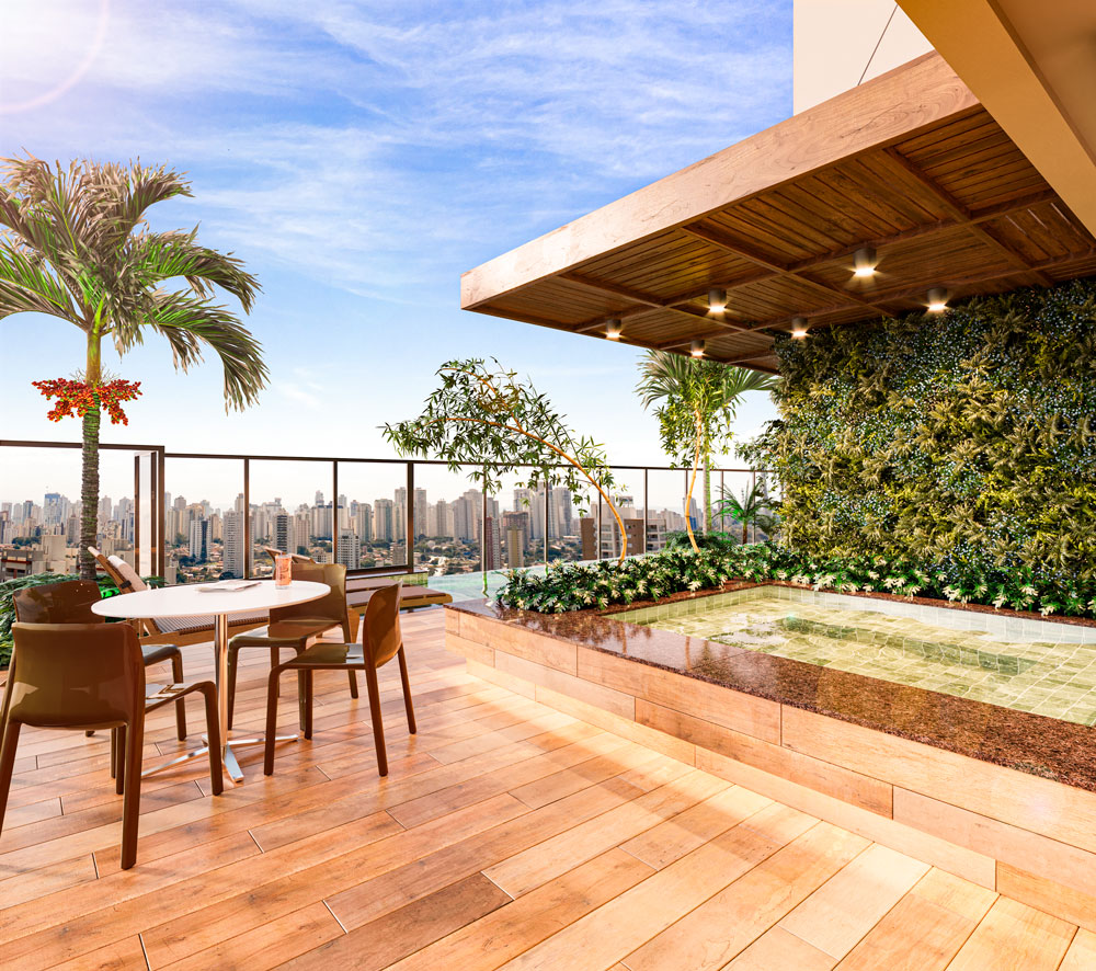Um encontro entre o urbano e a natureza. O ponto de equilíbrio entre o agito de um dia de trabalho e seu momento de descanso. Um lugar feito para receber sua vida com atmosfera que inspira requinte e bem-estar.