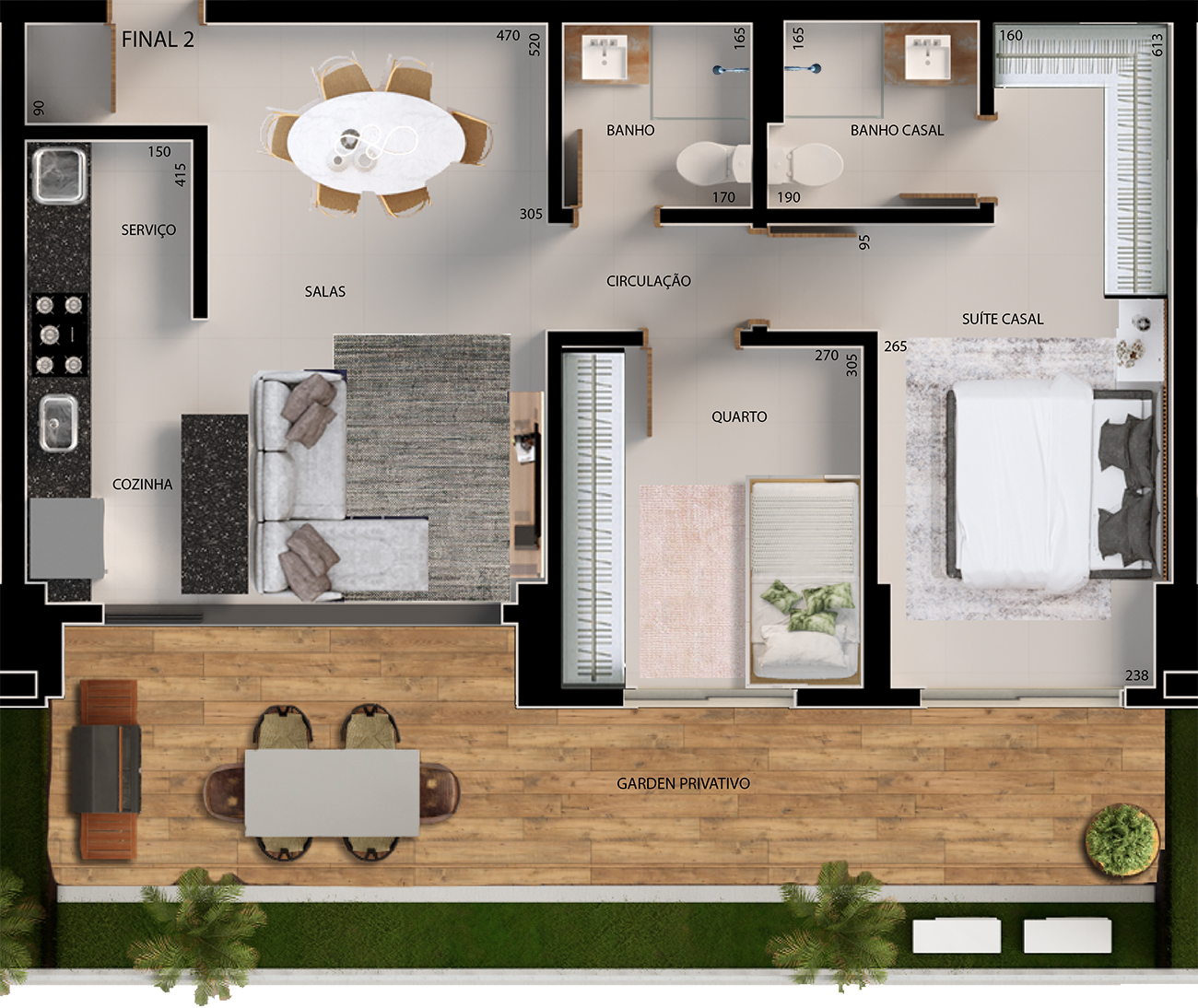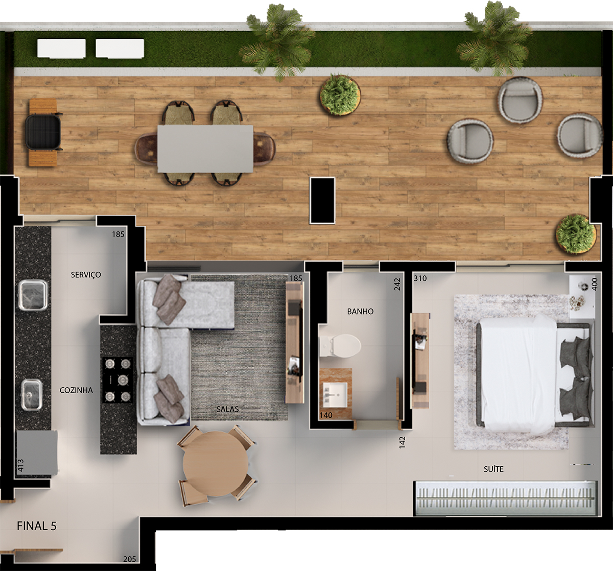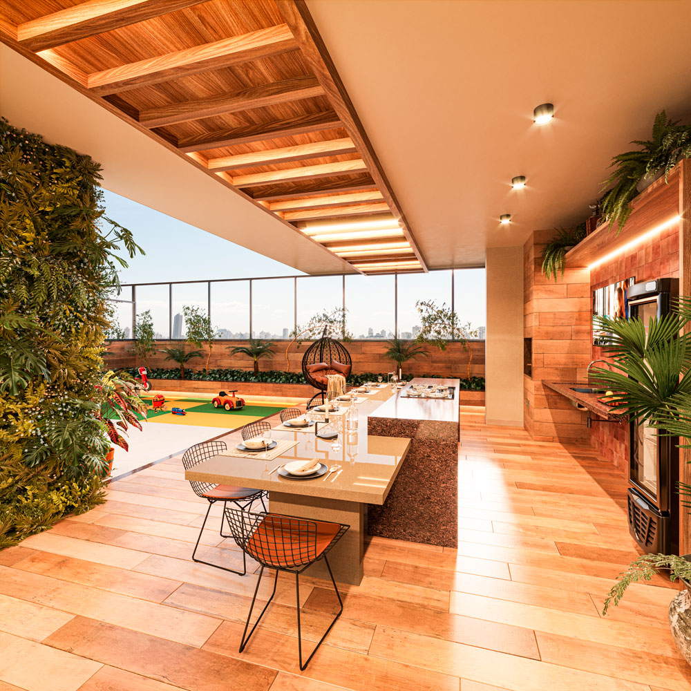 Seus momentos de descanso merecem uma vista maravilhosa. Venha relaxar em uma área de lazer com estrutura completa, mobiliada e equipada com som e adega. Prepara a playlist e o vinho, que o cenário já está pronto para diversão.