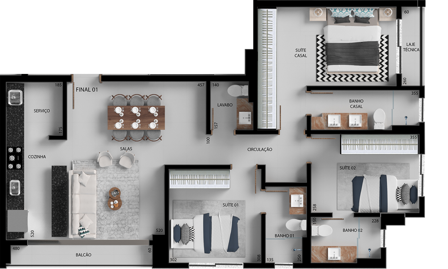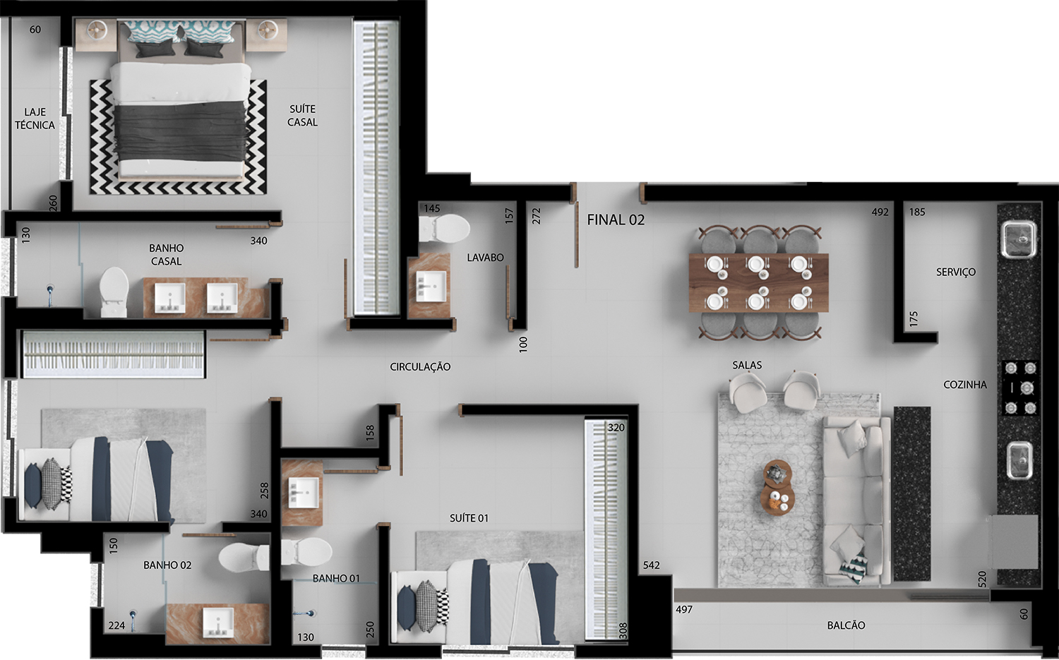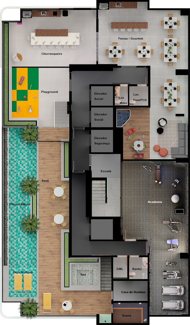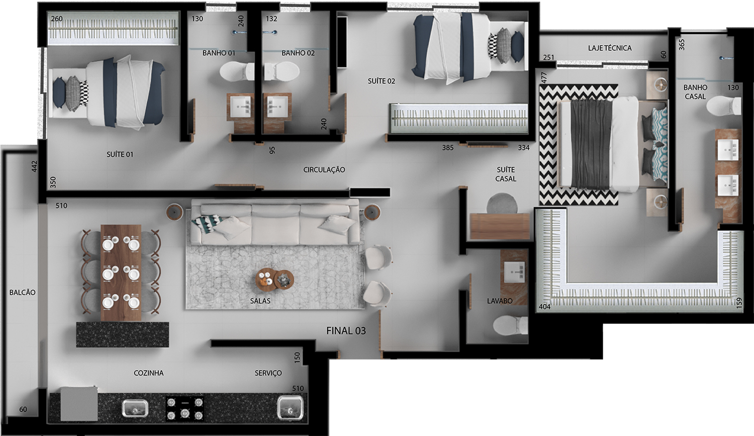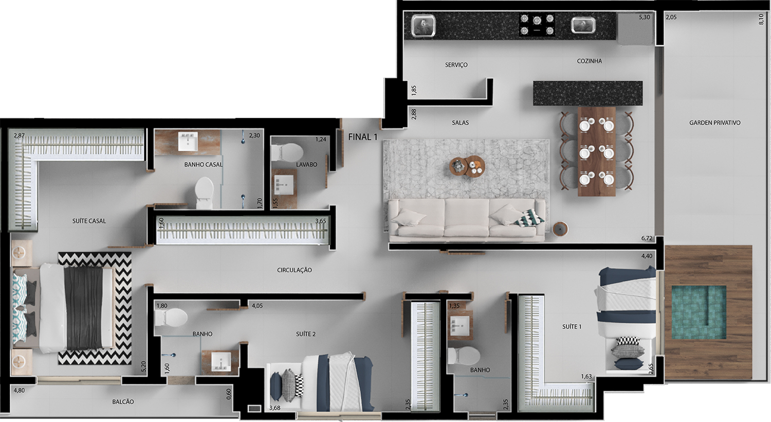 São apartamentos de 48 a 117 m² com 1, 2 e 3 suítes. Espaços com foco no conforto e com altíssimo padrão de acabamento.