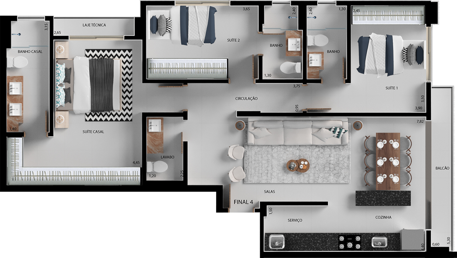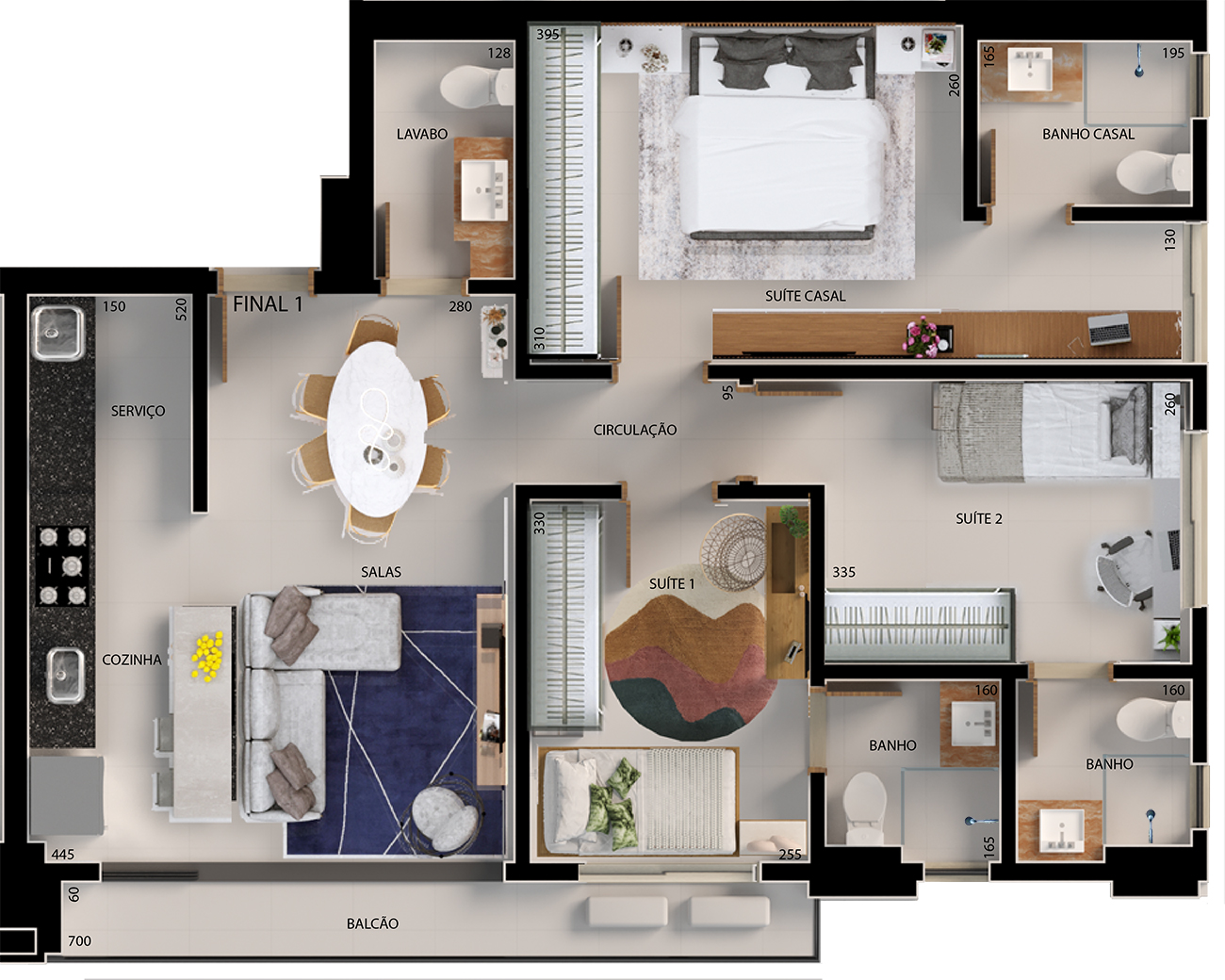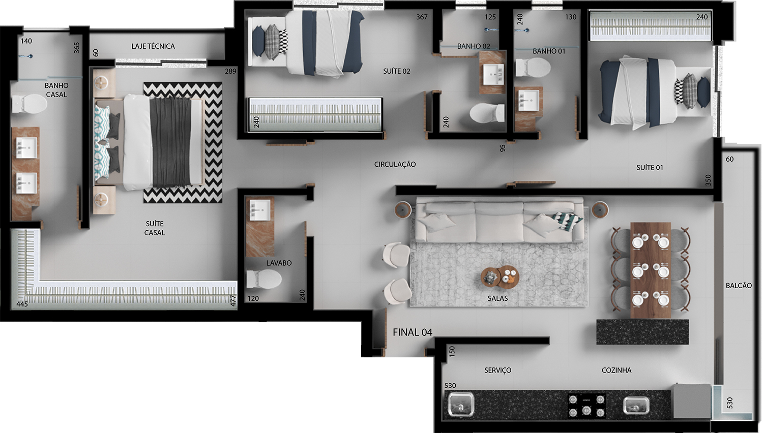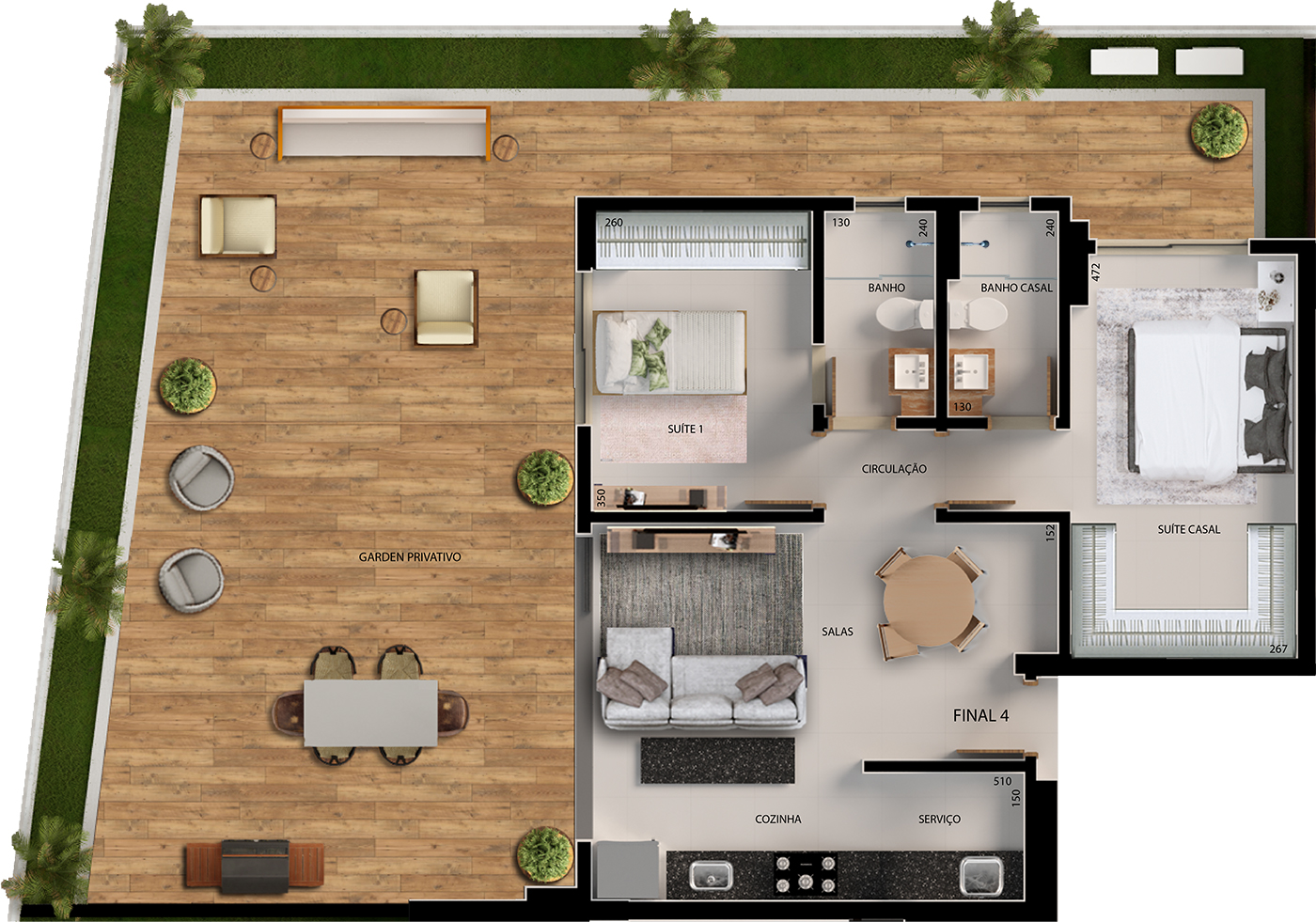 São apartamentos de 48 a 117 m² com 1, 2 e 3 suítes. Espaços com foco no conforto e com altíssimo padrão de acabamento.