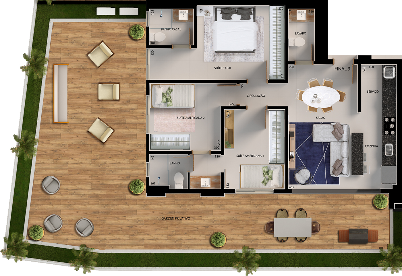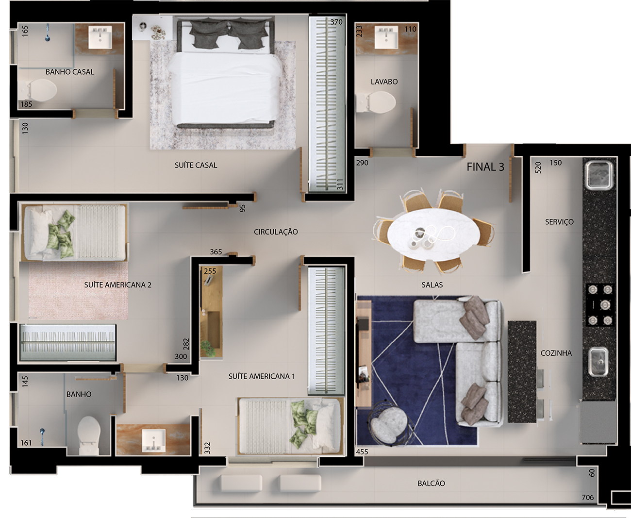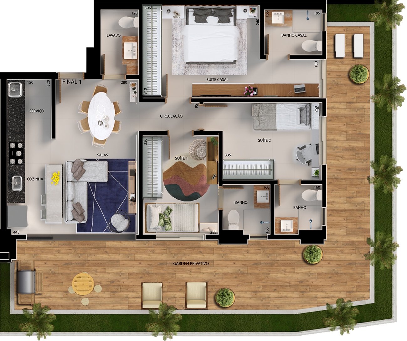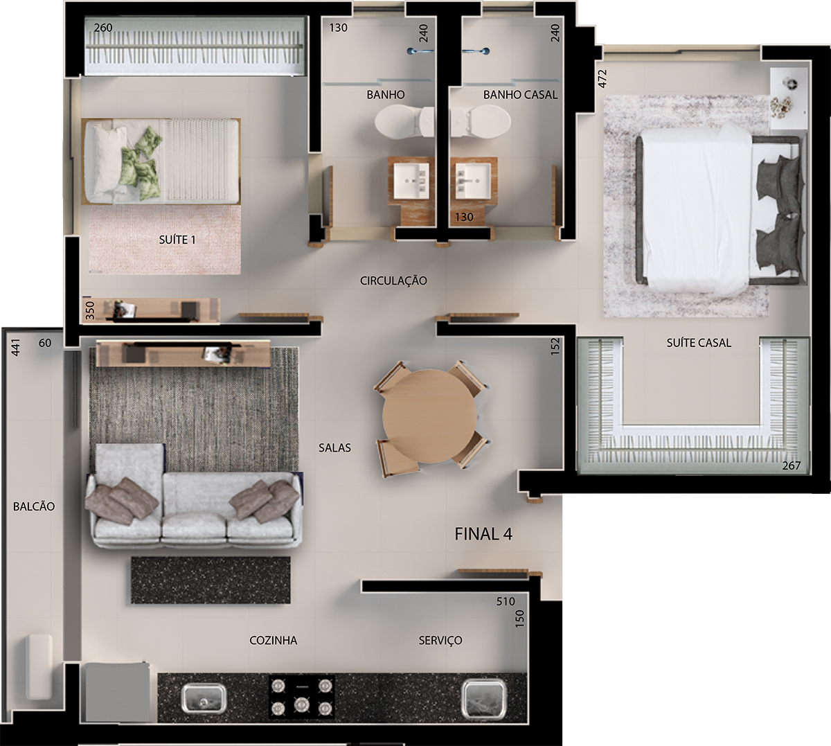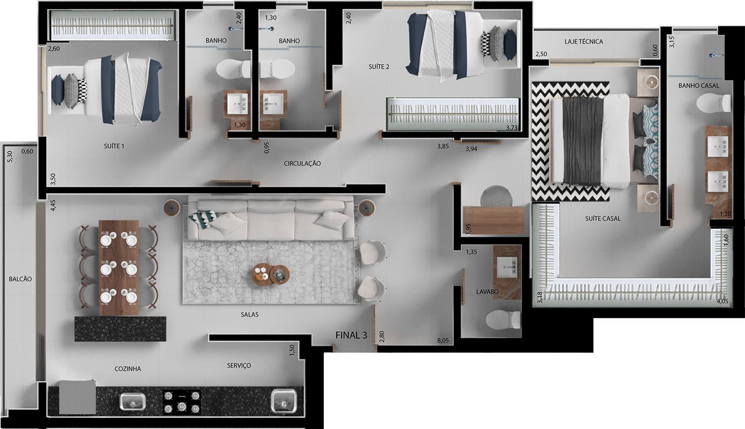 São apartamentos de 48 a 117 m² com 1, 2 e 3 suítes. Espaços com foco no conforto e com altíssimo padrão de acabamento.